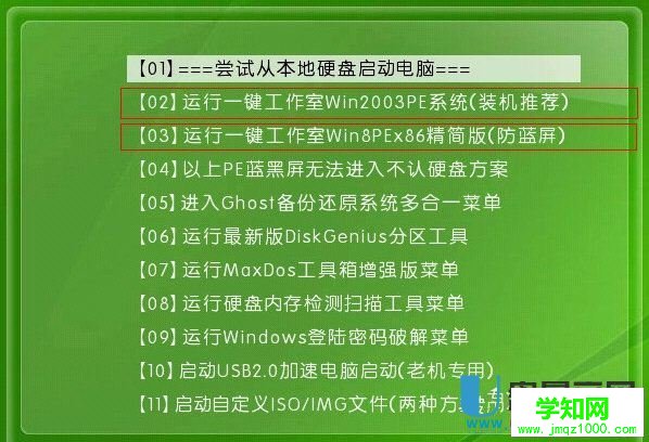 3、按下F12后,電腦即進(jìn)入如下界面,如圖。接著在啟動(dòng)菜單中選擇win2003PE或win8pe,然后按回車(chē)鍵進(jìn)入。