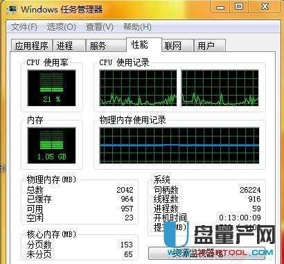 把CPU使用率較大的軟件關閉以后,我們再回到windows任務管理器性能項目下查看,發現CPU使用率只有10% 30%,線也恢復平穩了。還是比較理想的。