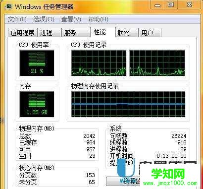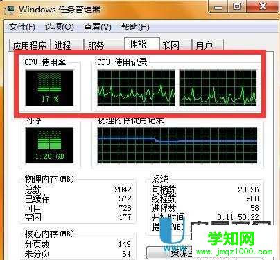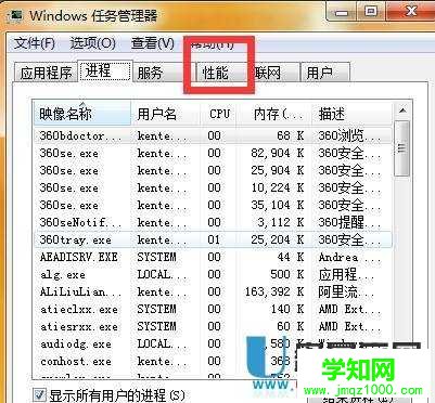 在彈出的windows任務管理器選項卡中選擇性能選項,在這里就可以查看電腦的CPU使用情況了。