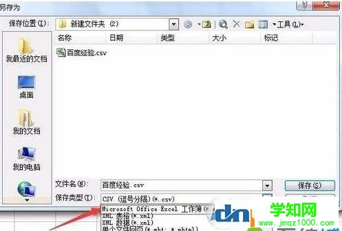 3、在另存為窗口,把文件類型更改為Microsoft Office Excel 工作簿 *xls 或*xlsx。