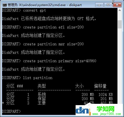 8、然后我們可以依次創建EFI分區、MSR分區和主分區,方法是依次執行如下命令: