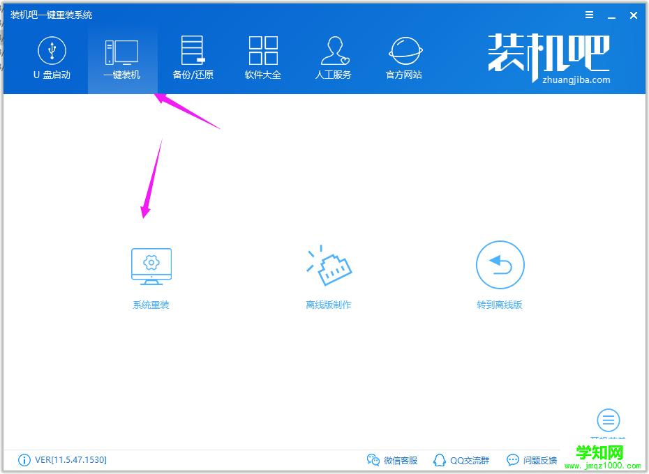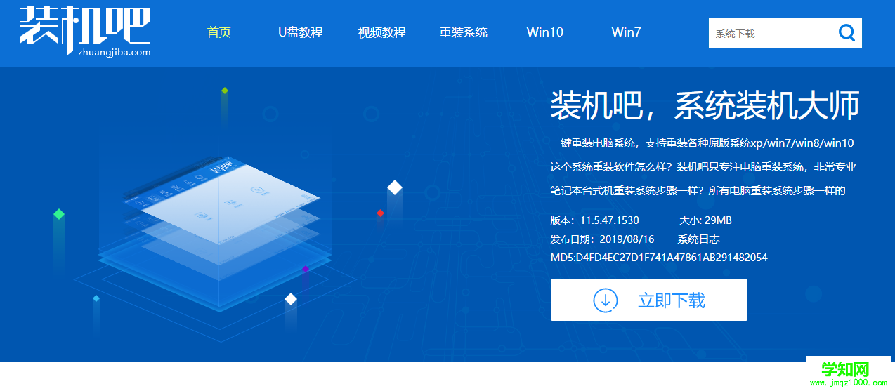 1-1:我們可以在裝機(jī)吧官網(wǎng)快速獲得重裝軟件工具,首頁(yè),欄目頁(yè),和內(nèi)容頁(yè)都可以快速獲得,像在首頁(yè)即可下載系統(tǒng)