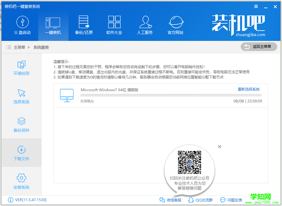 1-4:通過(guò)【安裝此系統(tǒng)】之后,我們繼續(xù)往下走會(huì)最終走到在線下載系統(tǒng),到這一步。接下來(lái)的操作裝機(jī)吧軟件會(huì)自動(dòng)進(jìn)行了,不用我們操心