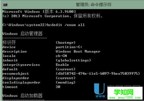2、輸入命令bcdedit /enum all,回車,這時將會看到許多內存塊被標記為bad。