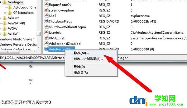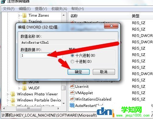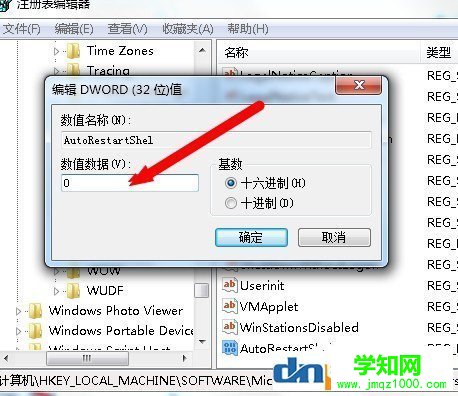 7、將其中的數字由0修改為1,如圖所示,這樣就可以阻止重啟了。