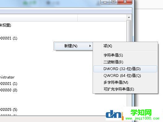 4、然后在右側空白的 地方新建dword32位,如圖所示: