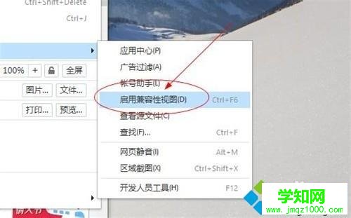 3、點擊"啟用兼容性視圖"瀏覽器兼容模式已開啟。