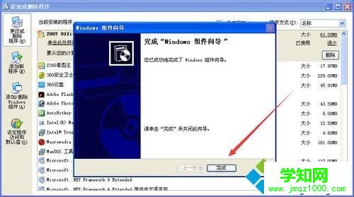 3、在彈出的“添加或刪除程序窗口”中,單擊左側紅框處的“添加/刪除windows組件”按鈕;