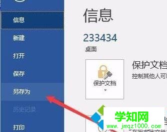 4、設置完成后在保存文件的時候,點擊“文件”菜單,在彈出菜單中選擇“另存為”菜單項,如圖: