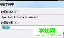 接下來就去找到HKEY_LOCAL_MACHINE/SYSTEM/CurrentControlSet/Control一項打開,可以發現其中有一項 WaitToKillServiceTimeOut ,鼠標右鍵點擊修改可以看到Win7默認數值是12000(代表12秒),這里可以把這個數值適當修改低一些,比如5秒或是7秒。