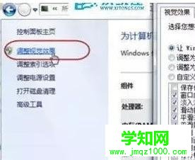 Win7默認是顯示所有的視覺特效,這里你也可以自定義部分顯示效果來提升系統速度。