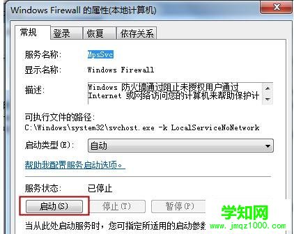 在彈出的 Windows Firewall的屬性 框中,點擊 啟動