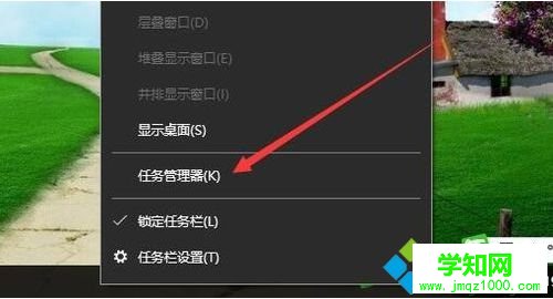 1、我們也可以在Windows10桌面,右鍵點擊桌面底部的任務欄,在彈出菜單中選擇“任務管理器”菜單項;