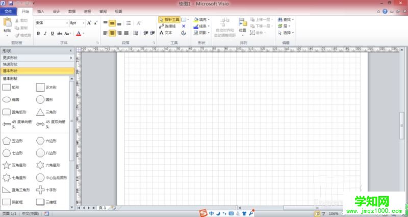 3、點擊創建后,就進入了編輯頁面,這里提供了很多的圖形,以及編輯工具。屏幕中間的就是工作區。