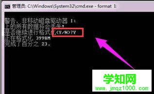 7、發出警告,此時驅動器上的數據會丟失,輸入Y進行確認。此時會顯示格式化磁盤的進度。