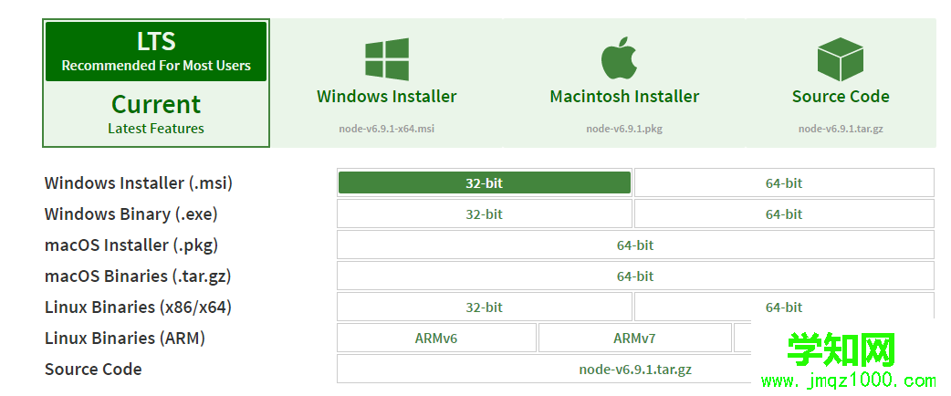 下載地址:網址http://nodejs.org/en/download/
