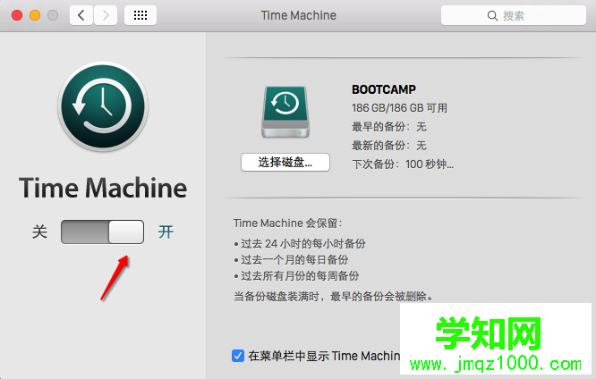3、隨后請(qǐng)先確保此時(shí) Time Machine 的開(kāi)關(guān)已經(jīng)打開(kāi),如圖所示