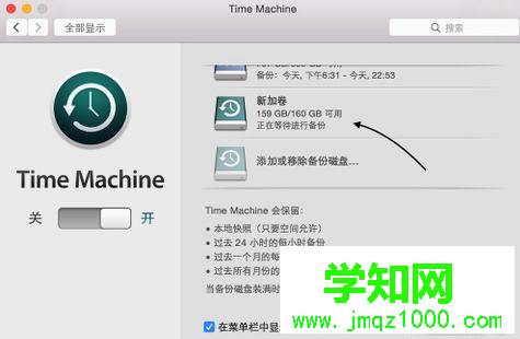 8、接著在 Time Machine 設(shè)置窗口中可以看到顯示 正在等待進(jìn)行備份 字樣。