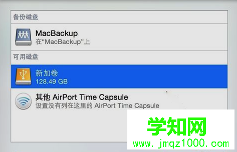 4、Time Machine 打開(kāi)以后,接著請(qǐng)點(diǎn)擊 選擇磁盤(pán) 按鈕,如圖所示