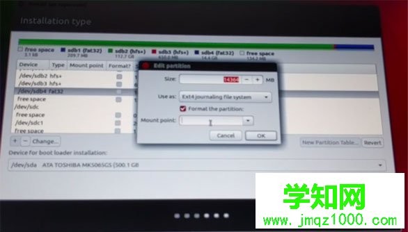 然后把device for boot loader installation的選項改為剛剛格式化的磁盤。