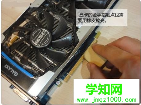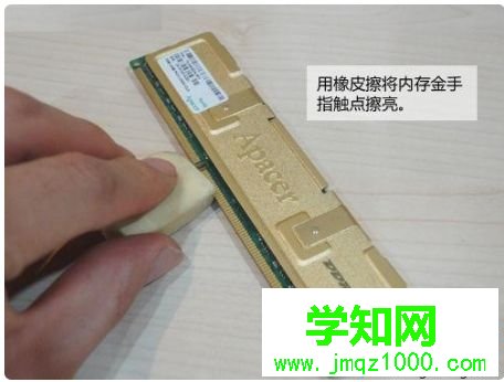 2、關閉電源,打開機箱,拔下內存條,用橡皮擦在內存條的金手指指上擦拭幾下后,再將內存條插到主板的插槽里;