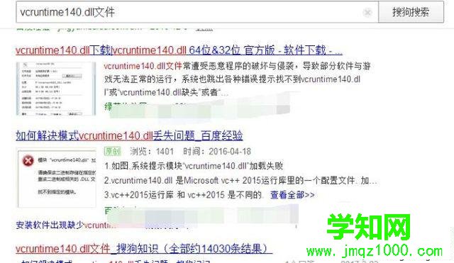 6、還有一種方法就是直接下載vcruntime140.dll文件。打開搜狗瀏覽器,在搜索頁輸入:vcruntime140.dll文件下載,點(diǎn)擊進(jìn)入網(wǎng)站下載文件。