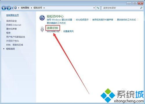 3、打開輕松訪問之后,點(diǎn)擊右邊的“語音識別”,如圖所示;