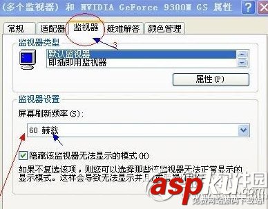 從圖中可以看到顯示器的刷新頻率設置為“60” ,這正是造成顯示器屏幕不斷抖動的原因。