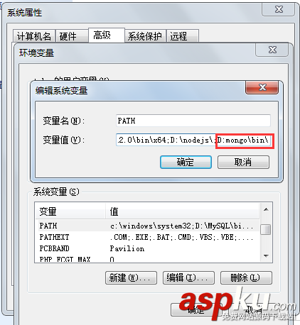 我們并不想每次啟動mongodb都去找bin目錄,因此我們需要配置下環境變量,也就是在path后面添加你的bin目錄