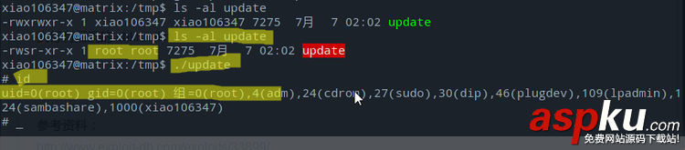 普通用戶在 /tmp 目錄下新建 update.c(代碼實示例如下):