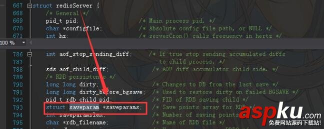 <1>.saveparams參數是在server對象下面,而server對象正好是redisServer類型,如下圖: