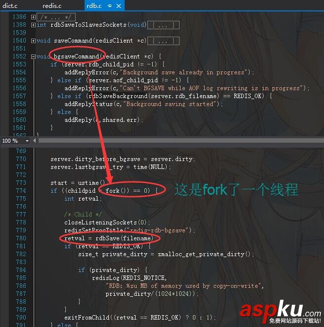 確實如你所說,bgsave是開啟次線程進行數據刷新的,不信的話我們來看看代碼,它的代碼是在rdb.c源文件中,如下: