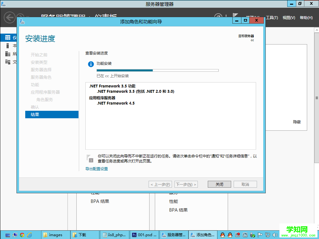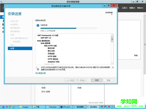 軟件及平臺要求:  1、平臺:windows2012serverdatacenter(數據中心版)  2、環境:iis8php5.3.20rewrite_2.0_rtw_x64phpMyAdmin-3.5.5  3、數據庫:mysql5.5.28  4、硬盤:要求全部用NTFS格式分區  5、測試用程序:discuzx2.5  配置順序:  1、將所以分區格式化為NTFS格式(此步省略)  2、安裝操作系統windowsserver2012datacenter(此步省略)  3、安裝iis  4、安裝php5.3.20  5、安裝mysql5.5.28  6、安裝phpMyAdmin-3.5.5-all-languages  7、在C盤以外的分區新建一個文件夾(隨便命名,用來作為網站根目錄)  8、配置相關文件夾權限例如:IUSR、NETWORKSERVICE修改權限  測試環境是否完全成功:  1、安裝discuzx2.5  2、用phpmyadmin操作mysql5進行表和庫的操作  下面開始正題,偶現在配置iis8php環境。  首先準備好相關軟件和環境,再配置,這些軟件需要你自己去下載,網上都能找到:)由于全部都是開源軟件,所以都使用最新版本,這樣也有利于php環境的配置。  一、  先安裝iis8.0,這是Windowsserver2012的默認服務器,性能相對上一代的iis7.5,有進一步的提升。打開服務器管理器-添加角色和功能-找到服務器角色-html' target='_blank'>應用程序服務器勾選,下一步勾選.netframework3.5進行安裝,這個需要點時間,請耐心等待。