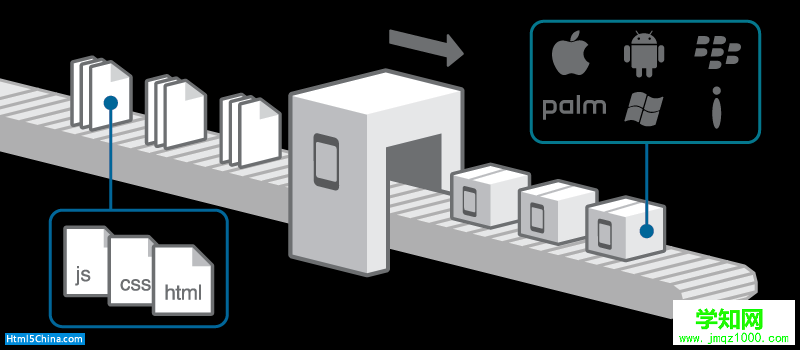 2)手機應用創建工具:將遵循PhoneGAP應用框架編寫的程序轉換/封裝生成各平臺支持的手機應用。