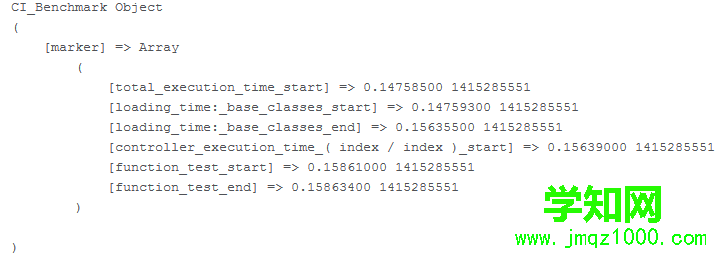 if ( ! isset($this->marker[$point2])){ $this->marker[$point2] = microtime();} (4).最后返回的兩個(gè)mark點(diǎn)的時(shí)間差:
