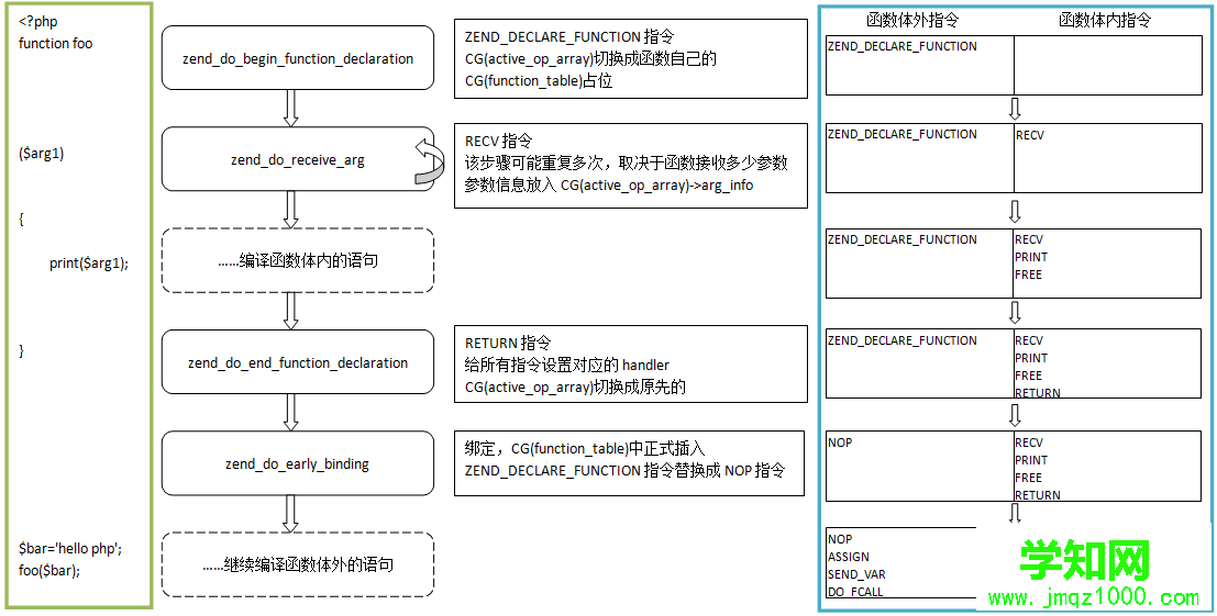 7、總結(jié)這篇其實(shí)主要是為了弄清楚,函數(shù)如何被編譯成op_array。一些關(guān)鍵的步驟如下圖: