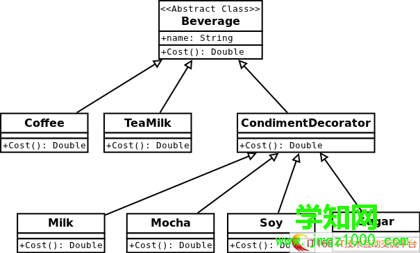 1.裝飾者(Milk)和被裝飾者(Coffee)必須是一樣的類型。目的是裝飾者必須取代被裝飾者。