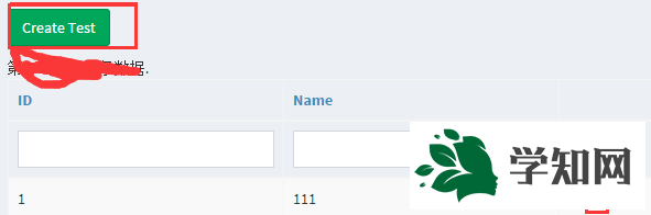 為了方便操作,我們這里增加一個測試表test,我們先用未做修改的gii模版生成一份model+curd。我們先把test/*的所有權限分配給當前登錄的用戶,并添加一條數據。打開/test我們可以正常看到下面的截圖,注意圖中的兩個標記。