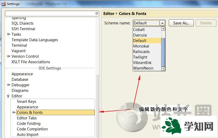 打開“File”-“Settings”-“Editor”-“Appearance”里點中“Colors & Fonts”,右邊會有一些已有的風格,它們是編輯器的整體風格,如圖: