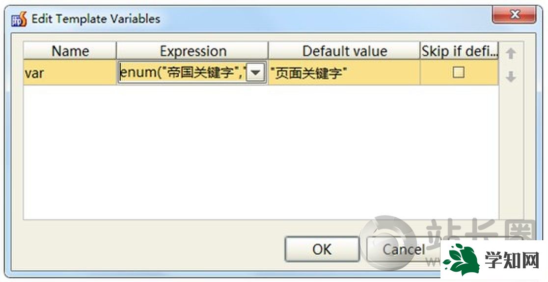 可以看見“Derfault value”是默認值,我們輸入“”頁面關鍵字””,注意這是一個字符串類型,外面要加英文的雙引號,前面一個“Expression”里有很多函數(shù),我 們要介紹的是“enum()”枚舉函數(shù),我們輸入“enum(“帝國關鍵字”,”phpcms關鍵字”)”,括號里是參數(shù),參數(shù)用英文雙引號括起來,參數(shù) 中間用英文逗號相隔。