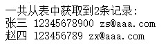 <?phptry { //創建對象 $dbh = new PDO('mysql:host=localhost;dbname=testdb', 'root', 'zhiaihebe0123');}catch(PDOException $e) { echo '數據庫連接失?。?#39;.$e->getMessage(); exit;}$query = 'SELECT name,phone,email FROM contactInfo WHERE departmentId='D01'';try{ $pdostatement = $dbh->query($query); echo '一共從表中獲取到'.$pdostatement->rowCount().'條記錄:<br>'; foreach($pdostatement as $row){ echo $row['name'] .' '; echo $row['phone'] .' '; echo $row['email'] .'<br>'; }}catch (PDOException $e){ echo $e->getMessage();}?>