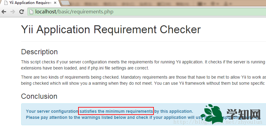 訪問(wèn)網(wǎng)址http://localhost/basic/requirements.php可以查看自己搭建的環(huán)境是否符合yii的要求