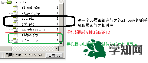 為了你的編程更加簡單,你的手機版頁面應該這樣布置,如果你的電腦版頁面叫xx.html,那么你的手機版頁面就應該叫ml_xx.html,補一個前綴或者后綴之類的什么給它,便于重定向簡單。這里是補上ml_前綴。
