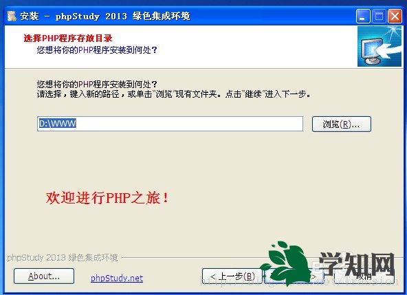 直接【下一步】繼續,這里選擇PHP程序存放目錄,也就是服務器地址,網站所存放的目錄!以后的http://localhost 將直接連接該目錄;