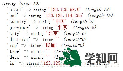 <?phpheader('Content-Type:text/html;Charset=utf-8');function GetIp(){ $realip = ''; $unknown = 'unknown'; if (isset($_SERVER)){ if(isset($_SERVER['HTTP_X_FORWARDED_FOR']) && !empty($_SERVER['HTTP_X_FORWARDED_FOR']) && strcasecmp($_SERVER['HTTP_X_FORWARDED_FOR'], $unknown)){ $arr = explode(',', $_SERVER['HTTP_X_FORWARDED_FOR']); foreach($arr as $ip){ $ip = trim($ip); if ($ip != 'unknown'){ $realip = $ip; break; } } }else if(isset($_SERVER['HTTP_CLIENT_IP']) && !empty($_SERVER['HTTP_CLIENT_IP']) && strcasecmp($_SERVER['HTTP_CLIENT_IP'], $unknown)){ $realip = $_SERVER['HTTP_CLIENT_IP']; }else if(isset($_SERVER['REMOTE_ADDR']) && !empty($_SERVER['REMOTE_ADDR']) && strcasecmp($_SERVER['REMOTE_ADDR'], $unknown)){ $realip = $_SERVER['REMOTE_ADDR']; }else{ $realip = $unknown; } }else{ if(getenv('HTTP_X_FORWARDED_FOR') && strcasecmp(getenv('HTTP_X_FORWARDED_FOR'), $unknown)){ $realip = getenv("HTTP_X_FORWARDED_FOR"); }else if(getenv('HTTP_CLIENT_IP') && strcasecmp(getenv('HTTP_CLIENT_IP'), $unknown)){ $realip = getenv("HTTP_CLIENT_IP"); }else if(getenv('REMOTE_ADDR') && strcasecmp(getenv('REMOTE_ADDR'), $unknown)){ $realip = getenv("REMOTE_ADDR"); }else{ $realip = $unknown; } } $realip = preg_match("/[d.]{7,15}/", $realip, $matches) ? $matches[0] : $unknown; return $realip;}function GetIpLookup($ip = ''){ if(empty($ip)){ $ip = GetIp(); } $res = @file_get_contents('http://int.dpool.sina.com.cn/iplookup/iplookup.php?format=js&ip=' . $ip); if(empty($res)){ return false; } $jsonMatches = array(); preg_match('#{.+?}#', $res, $jsonMatches); if(!isset($jsonMatches[0])){ return false; } $json = json_decode($jsonMatches[0], true); if(isset($json['ret']) && $json['ret'] == 1){ $json['ip'] = $ip; unset($json['ret']); }else{ return false; } return $json;}$ipInfos = GetIpLookup('123.125.114.144'); //baidu.com IP地址var_dump($ipInfos);