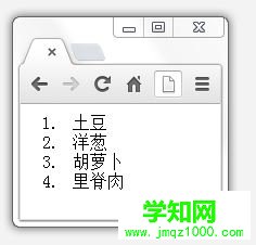XML/HTML Code復制內容到剪貼板 <ol> <li value="2">土豆</li> <li value="1">洋蔥</li> <li value="3">胡蘿卜</li> <li value="4">里脊肉</li> </ol>