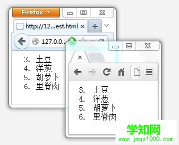 接著,如果不想讓它從1開始呢?比如要讓它從3開始,我們就可以給OL標簽添加start屬性,并設置為3。