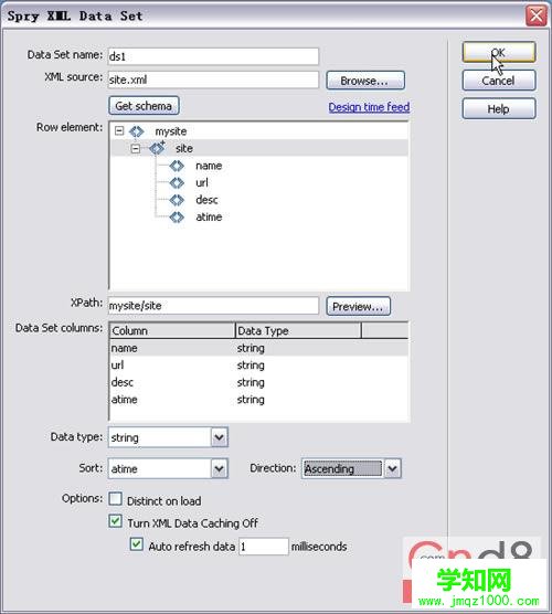 2,在Dreamweaver CS3中添加“Spry XML Date Set”