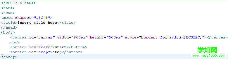 2.新建一個(gè)html5文件,此處命名為mario.html,定義canvas元素,開始動(dòng)畫start按鈕,暫停動(dòng)畫stop按鈕