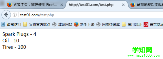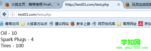 默認情況下,0元素是數組的第一個元素,使用$products[0]、$products[1]、$products[2],就可以使用數組$products的內容了。